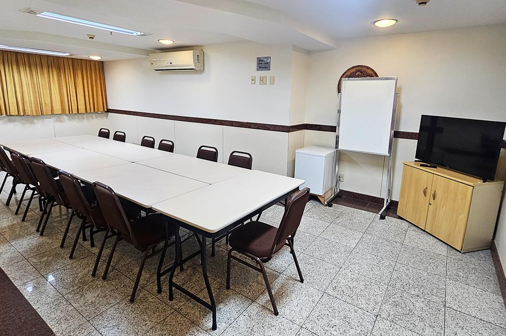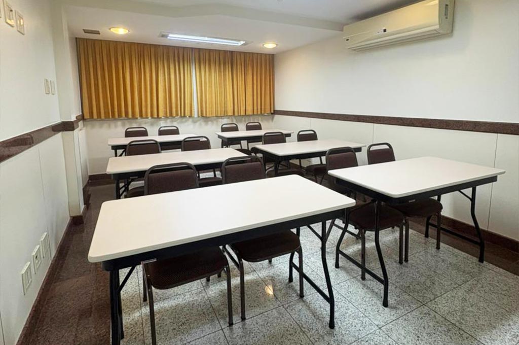 A sala oferece um ambiente moderno, funcional e versátil, ideal para reuniões, treinamentos, workshops, apresentações e encontros corporativos. Com layout flexível, climatização, infraestrutura adequada, internet e atendimento especializado, cada evento é planejado para garantir conforto, organização e eficiência do início ao fim.